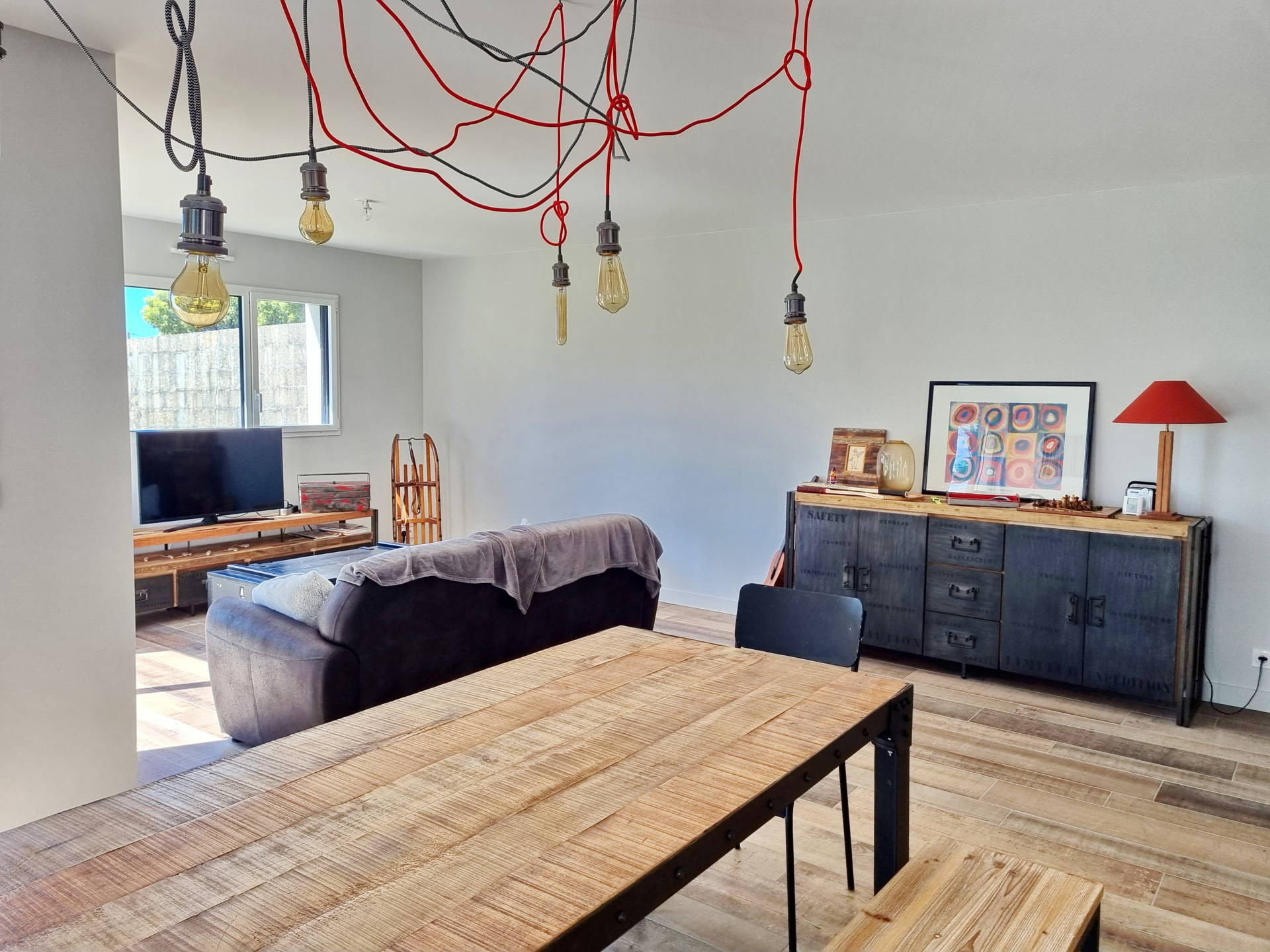 • Salon-salle à manger avec poêle à bois, TV, WIFI et accès direct à la terrasse.