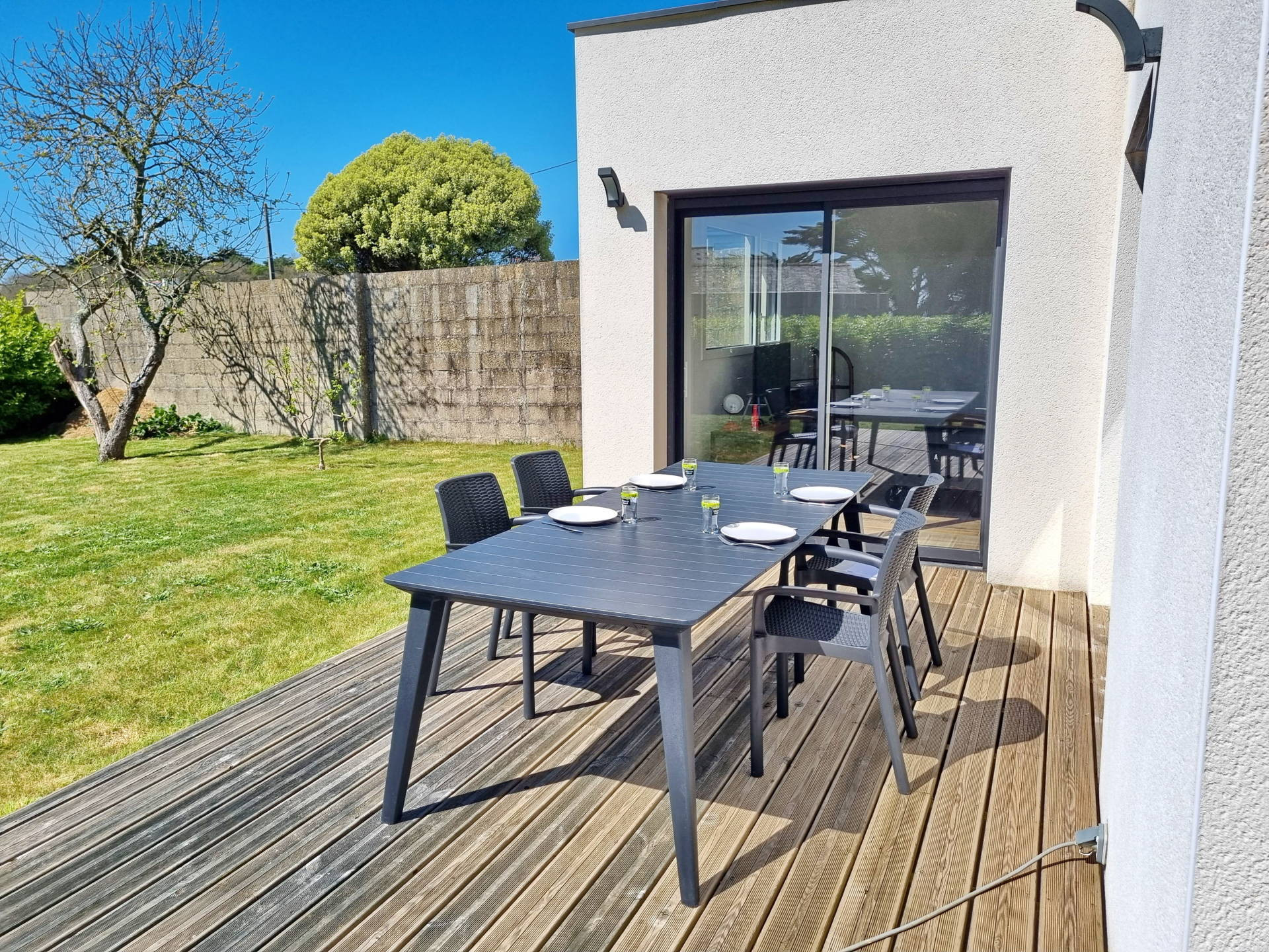 Location maison moderne à Audierne – 100m de la plage – Jardin clos, terrasse ensoleillée, parking privé.
