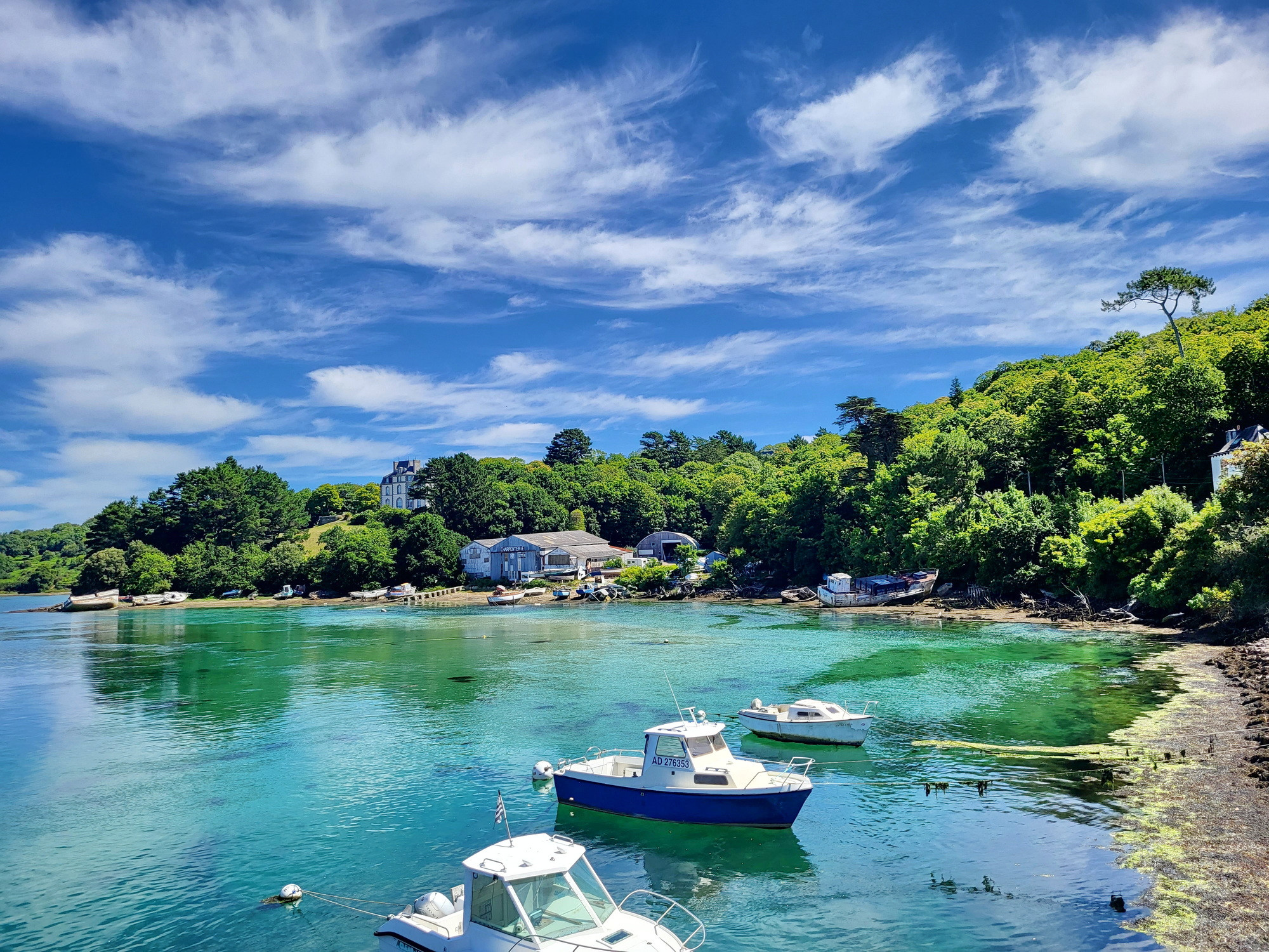 Entourée d’un vaste parc boisé, la propriété offre une vue imprenable sur la rivière le Goyen, le port d’Audierne et, au loin, sur la baie d’Audierne. Ici, calme et déconnexion sont au rendez-vous, dans un environnement préservé.